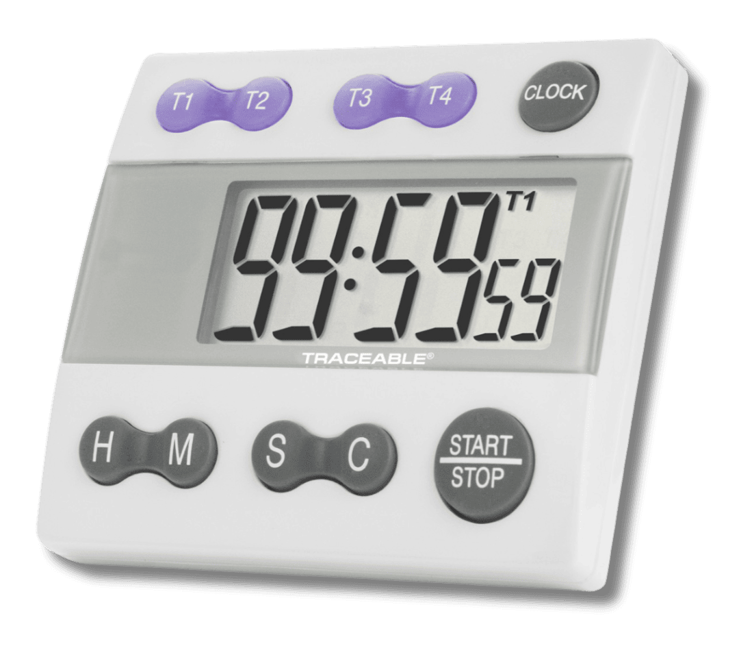 Configurado con conteo descendente o ascendente, alarma, funciones como: memoria, cronómetro, fecha y tiempo de espera.